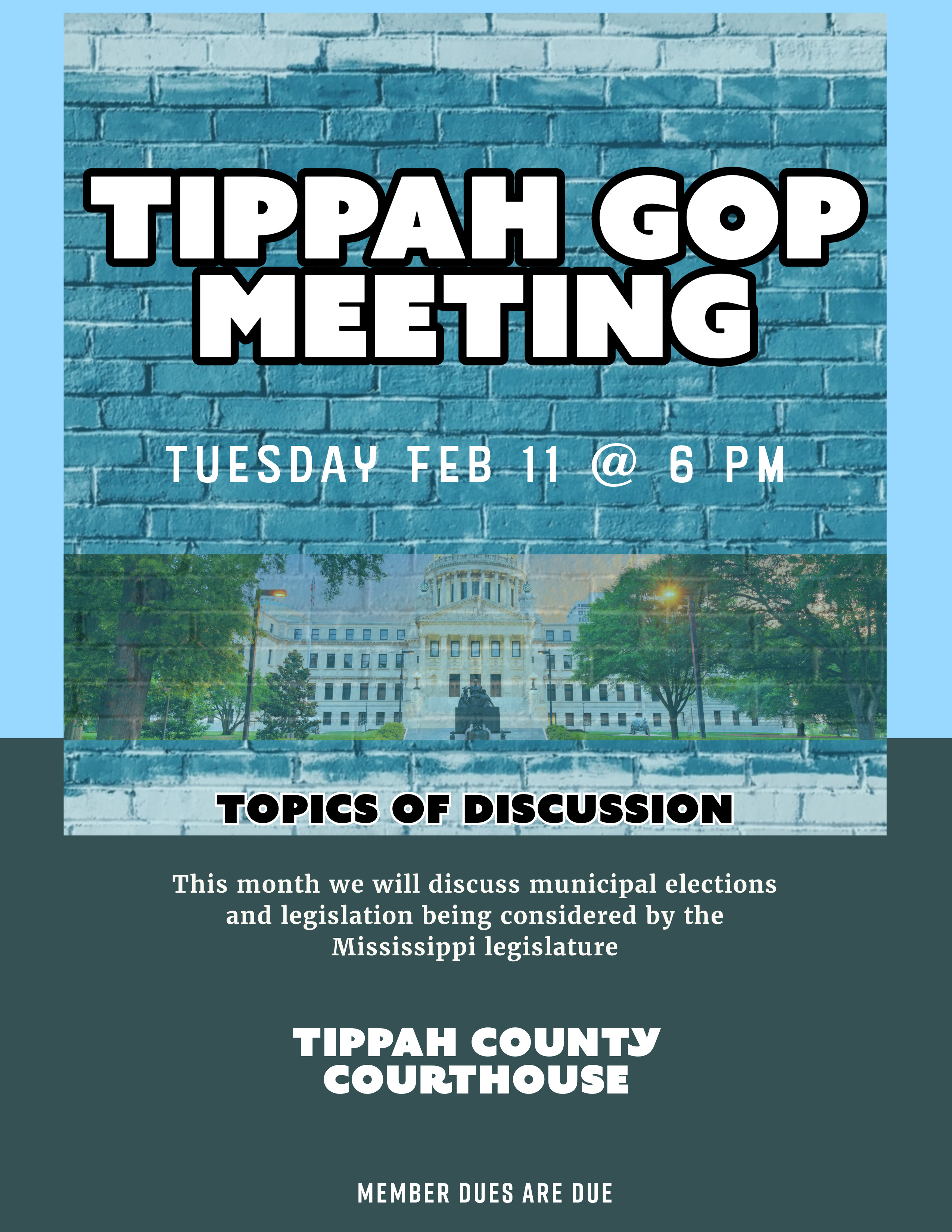 February Meeting AnnouncmentTuesday February 11 @ 6 PMTippah County Republican PartyFeb 07, 2025SharePreviousNext