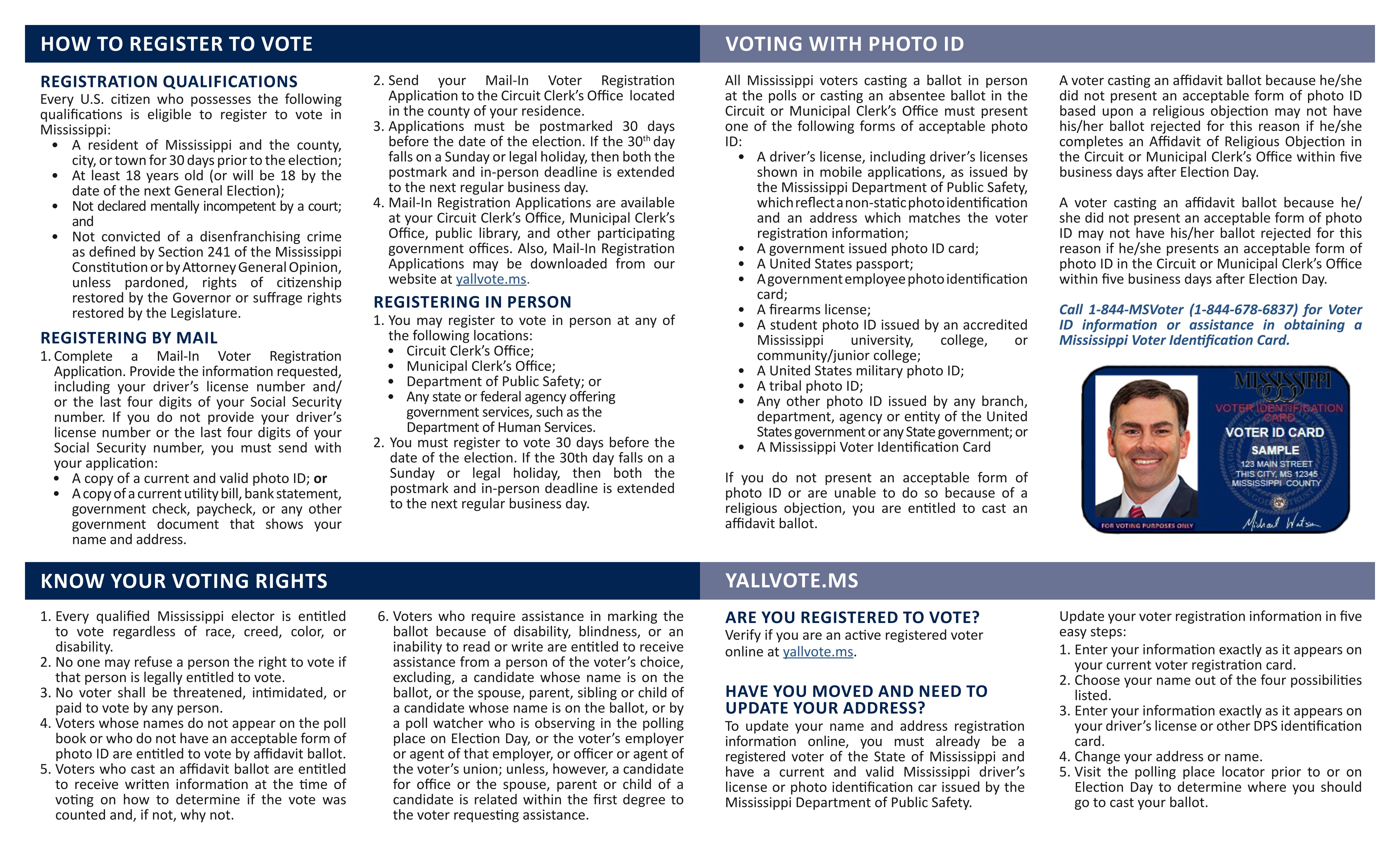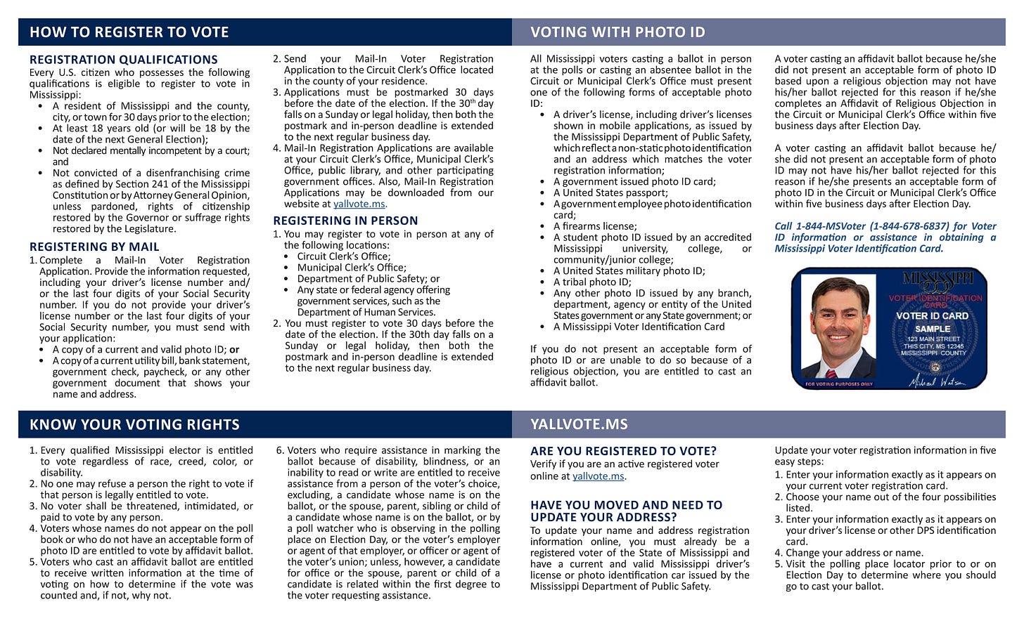 Mississippi Voter's GuideRegister to vote by October 7, 2024Tippah County Republican PartySep 22, 20241ShareDownload a pdf version of the Mississippi Voter’s Guide HerePreviousNext
