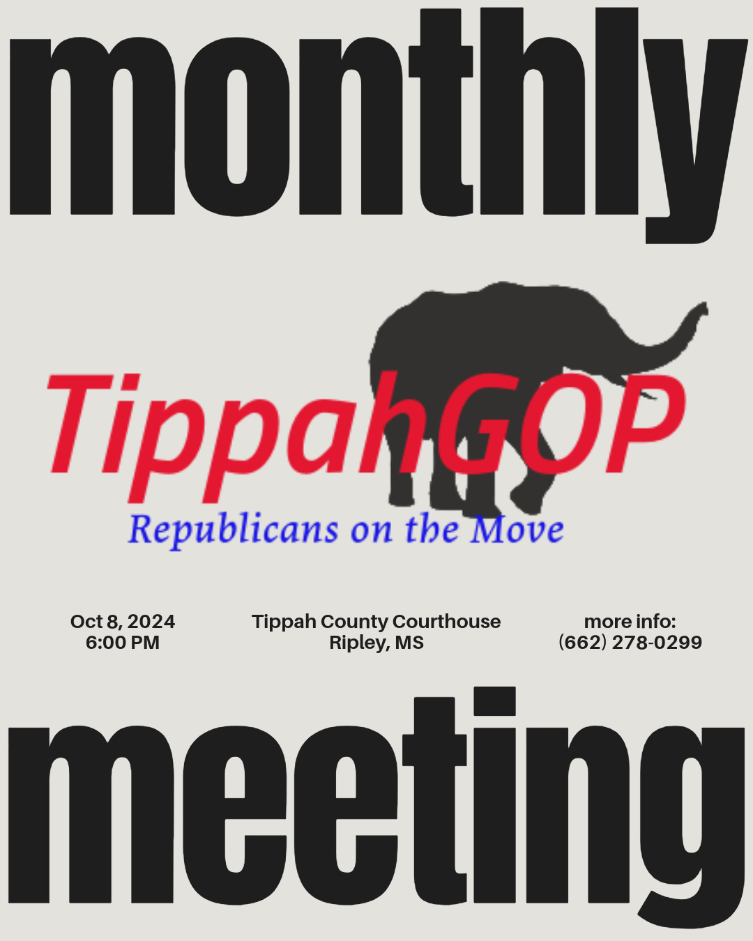 October GOP MeetingTuesday October 8th - 6 pmTippah County Republican PartyOct 02, 20241SharePreviousNext