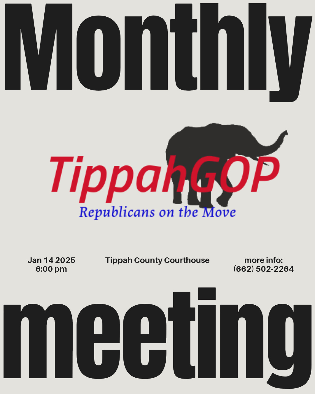Tippah GOP Executive Committee MeetingJanuary 14, 2025 - 6 PMTippah County Republican PartyJan 10, 2025SharePreviousNext